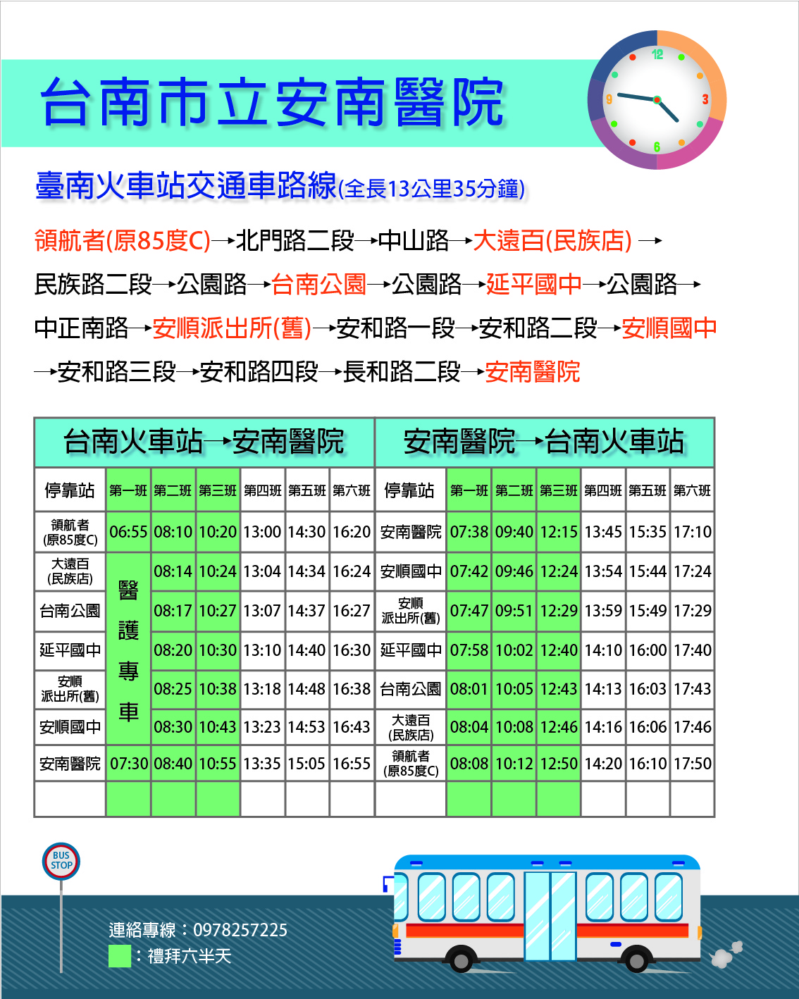 20~30分鐘一班次 接駁20號公車至安南醫院 |